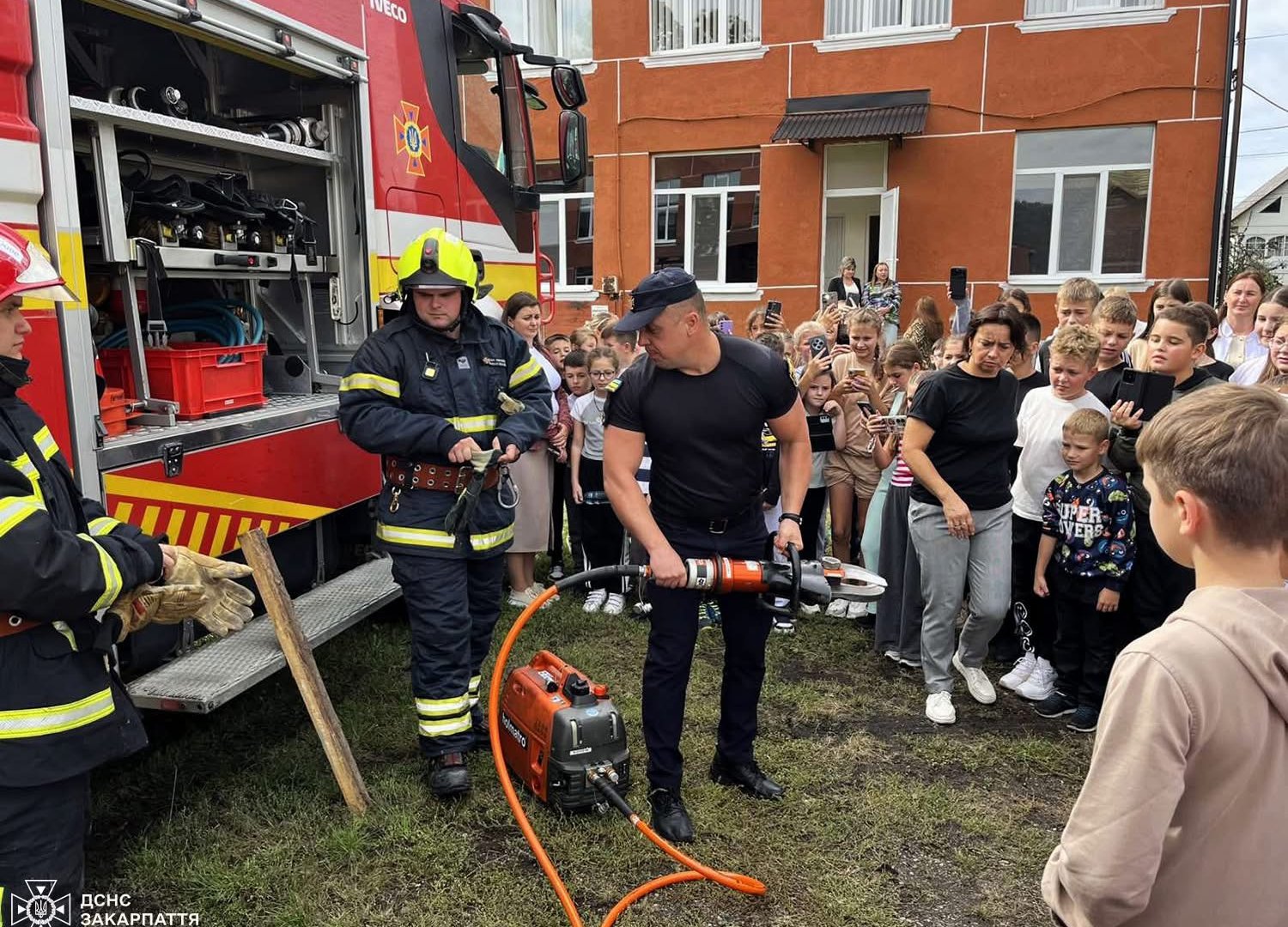 Найбільше вразила школярів демонстрація сучасної пожежної техніки й спорядження. Діти мали змогу не лише приміряти каски та захисний одяг, а й подати воду зі справжнього пожежного ствола.