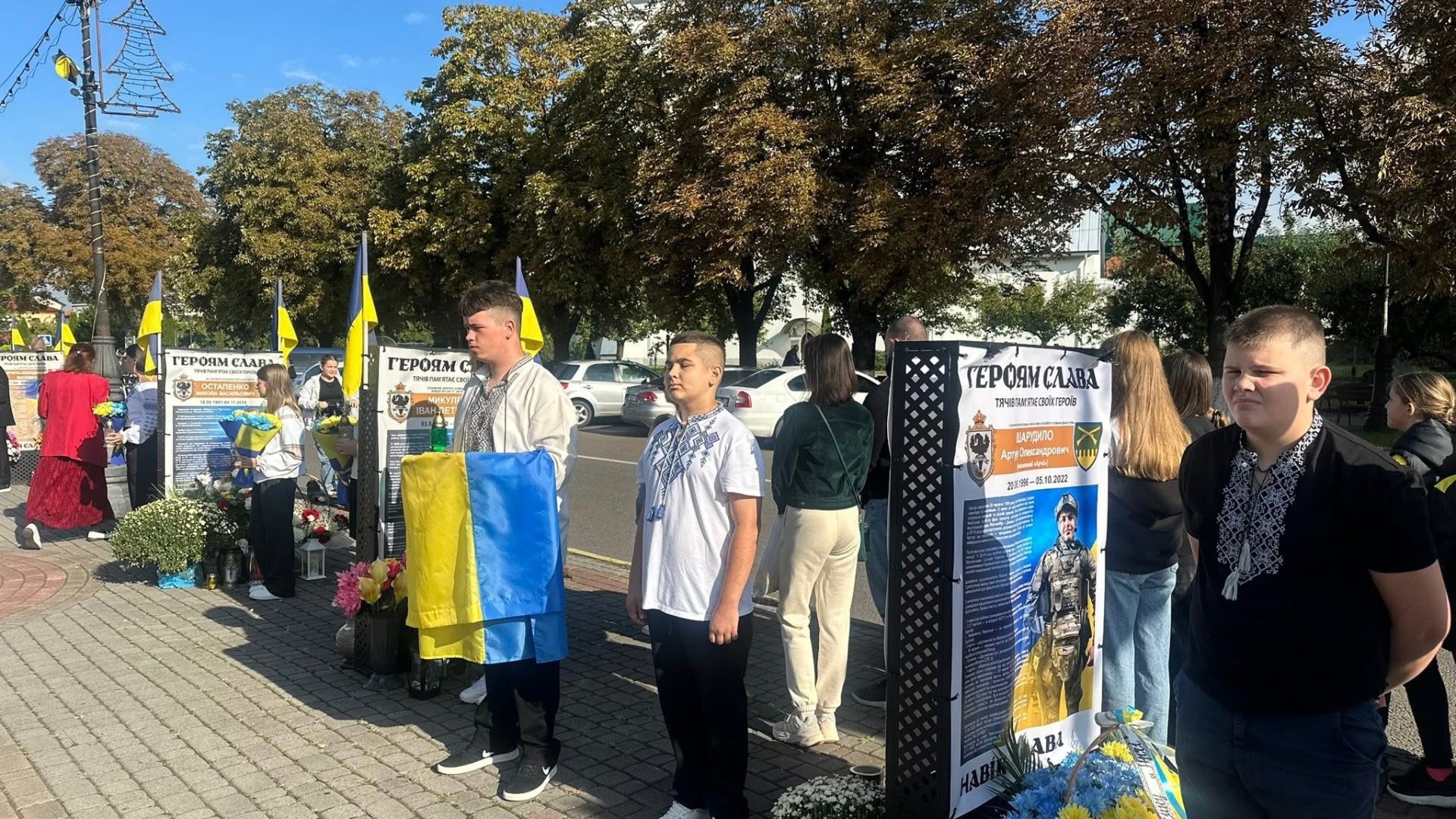 Учасники заходу вшанували хвилиною мовчання пам’ять усіх полеглих захисників України та поклали квіти й лампадки біля Меморіалу. На нових стендах викарбувані імена відважних тячівців, які віддали життя за свободу та незалежність Батьківщини, серед яких Сергій Іванчов, Артур Шарудило та ще десятки героїв громади. Їхні імена назавжди залишаться символом мужності та незламності.