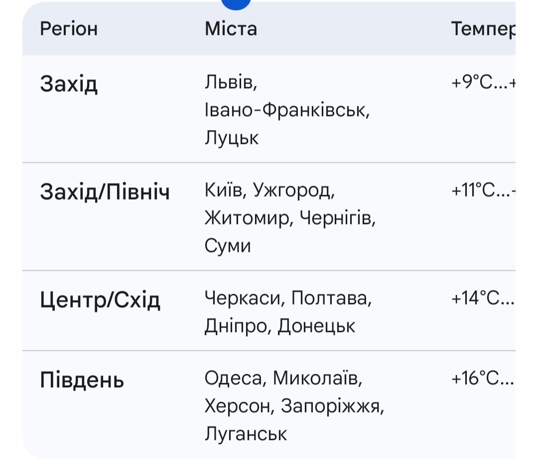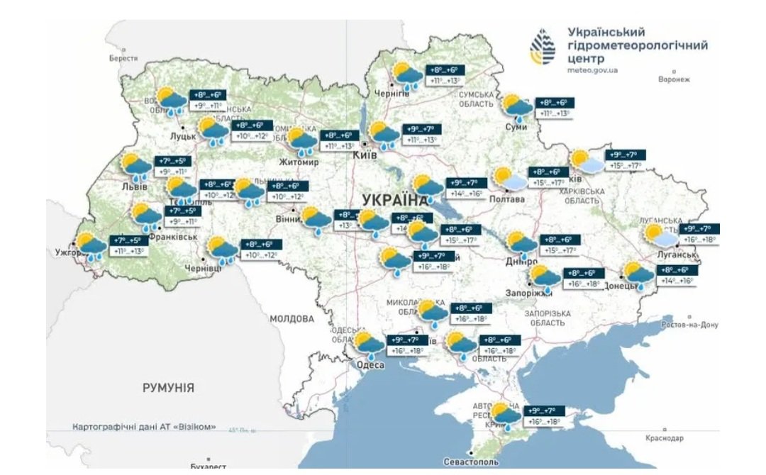 Зверніть увагу: Хмельницький, Тернопіль, Чернівці та Рівне матимуть температуру в межах +10...+12°C.