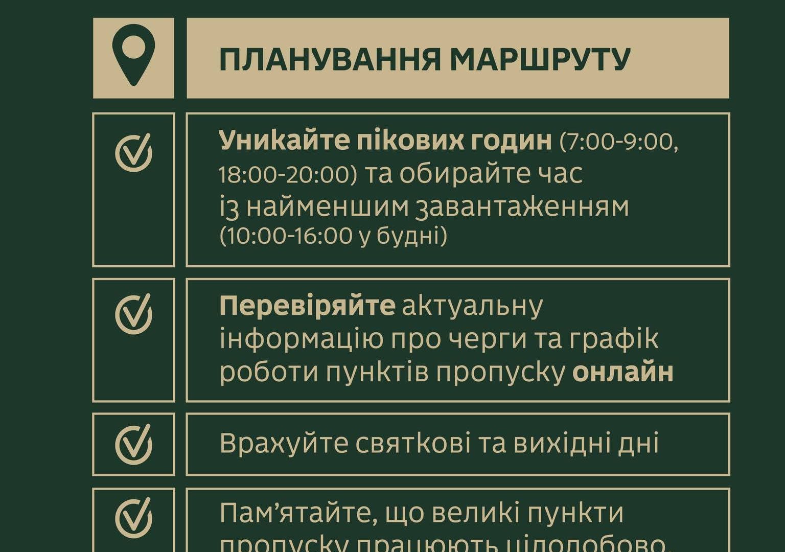 Ці поради допоможуть вам ефективно спланувати свою поїздку та мінімізувати час перебування у пункті пропуску.