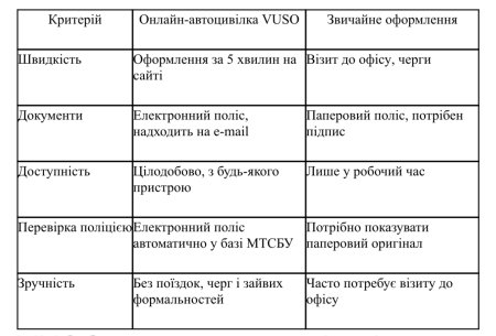 Багато водіїв уже відчули різницю між традиційним оформленням і новим онлайн-сервісом. Нижче — коротке порівняння, яке показує, чому все більше клієнтів обирають VUSO.