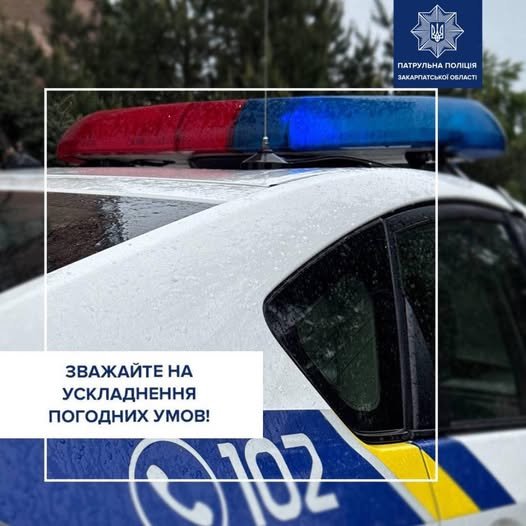 Патрульна поліція Закарпаття закликає всіх учасників дорожнього руху зважати на ускладнення погодних умов і дотримуватися базових, але життєво необхідних правил.
