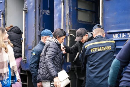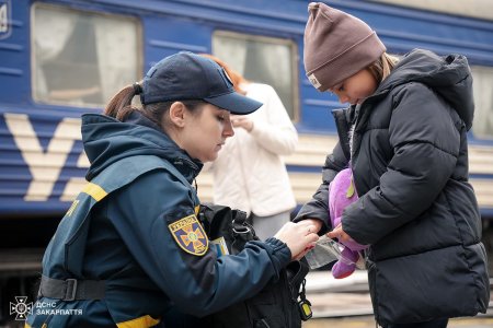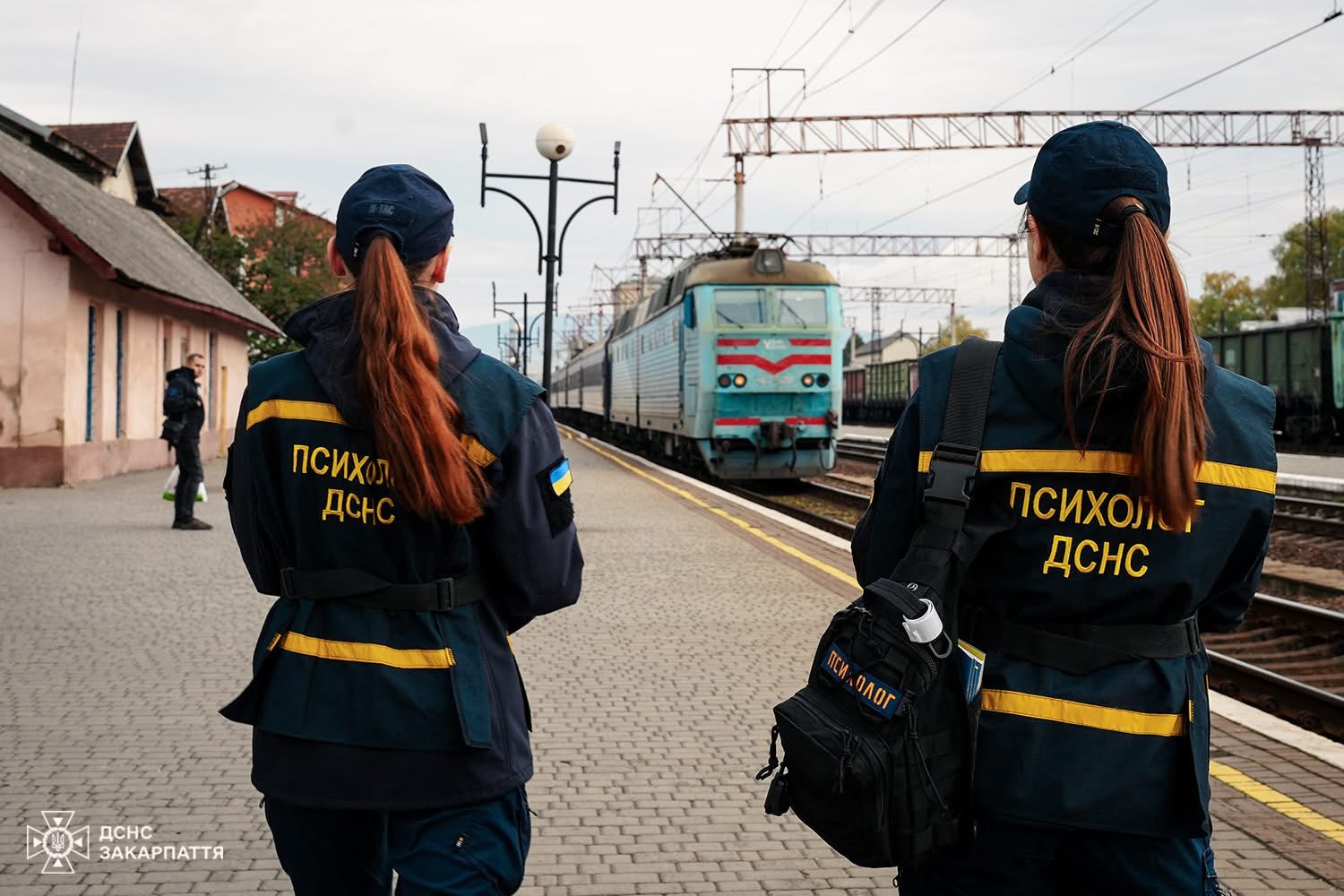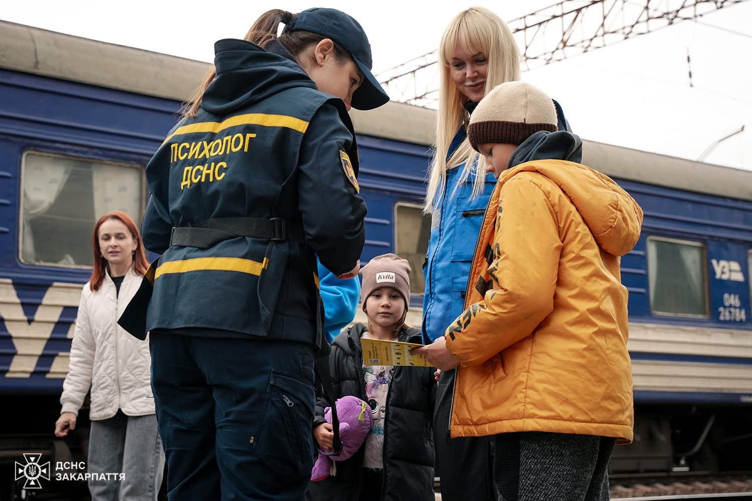 На залізничному вокзалі в Мукачеві рятувальники та волонтери зустріли чотири родини, які проїхали довгий шлях у пошуках безпеки. Загалом прибуло 14 людей, з яких 9 — діти, разом із їхніми вірними собаками Вестом та Арчі.