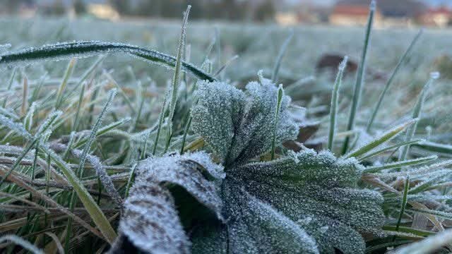 На поверхні ґрунту: Прогнозуються заморозки від 0^\circ до -5^\circ (нуль – п’ять градусів морозу).