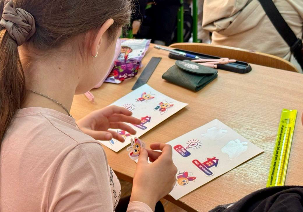 Під час заняття школярі дізналися, як виробляється та постачається електроенергія, обговорили види електростанцій і подивилися мультфільм про Світлячка — персонажа, який у доступній формі пояснює, як родина може заощаджувати електроенергію без втрати комфорту.