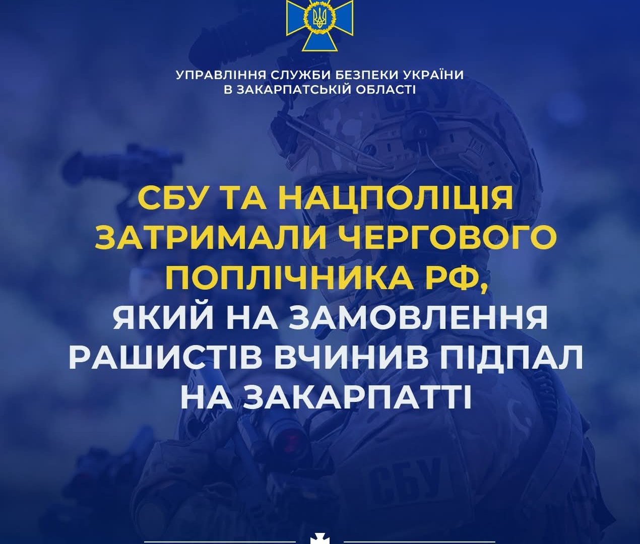 СБУ та Нацполіція затримали виконавця підпалу на Закарпатті, який діяв на замовлення спецслужб РФ