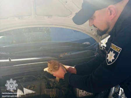 В Ужгороді патрульні врятували кота, який застряг під капотом авто