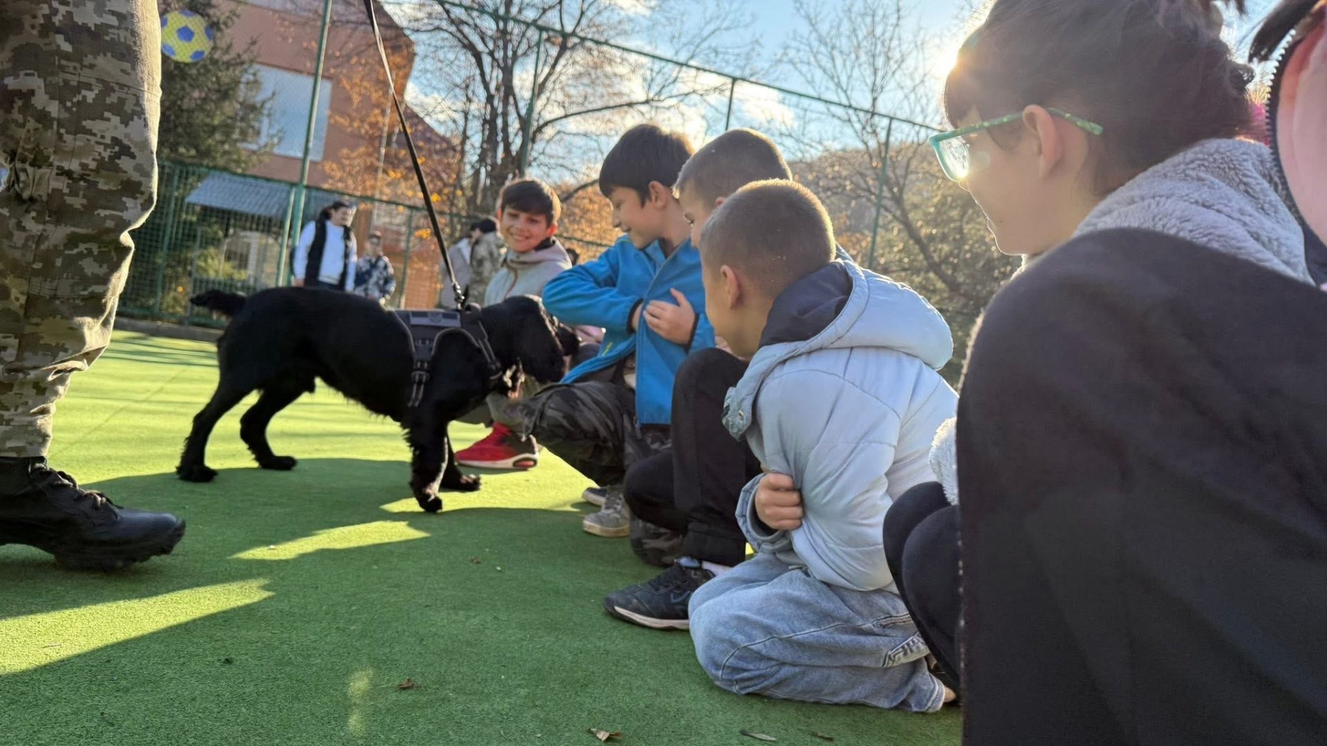 Прикордонники прийшли не самі, а разом зі своїми чотирилапими помічниками — службовими собаками Хамером та Джессі. Вони продемонстрували малечі, як шукають заборонені предмети у пунктах пропуску та патрулюють «зелений» кордон.