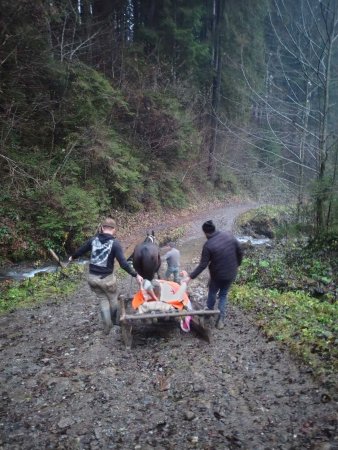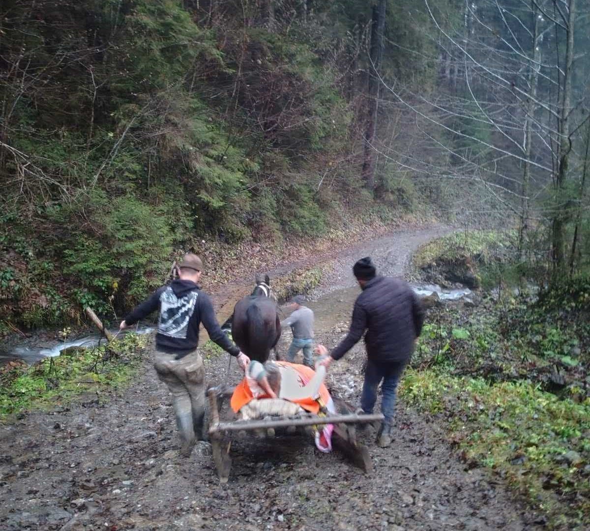 Єдиним транспортом, здатним пройти повністю розмитою дорогою, виявився кінь. Місцеві жителі організували транспортування хворого на повозці-волокуші, запряженій конем. Так, під наглядом медиків, пацієнта доставили до автомобіля швидкої допомоги, а звідти — до Рахівської районної лікарні.