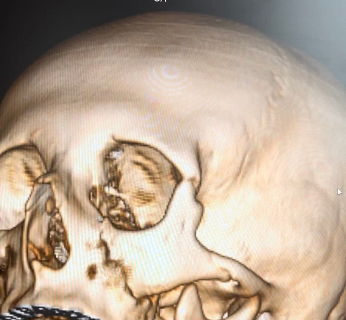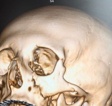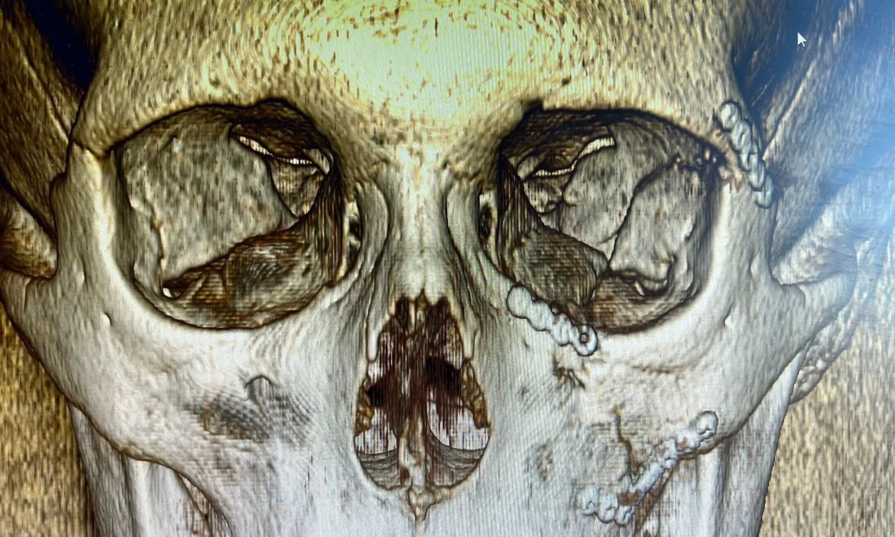 Дитина потрапила до медзакладу після удару з діагнозом відкритий перелом виличної та верхньощелепної кісток зі значним зміщенням вилично-орбітального комплексу.