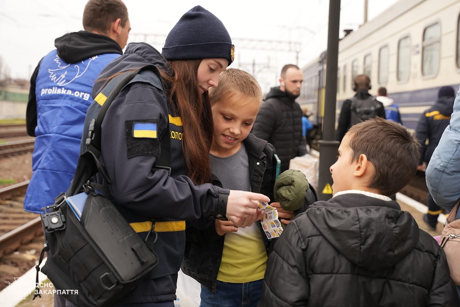 Сьогодні на залізничному вокзалі Мукачевого рятувальники, медики та волонтери зустрічали евакуаційний потяг. Людям допомогли з речами, надали психологічну підтримку та заспокоїли дітей.