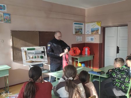Діти пригадали основні правила протипожежної безпеки вдома та дізналися, чому ігри з вогнем можуть мати небезпечні наслідки. Окрему увагу рятувальник приділив мінній безпеці: учням показали, як виглядають вибухонебезпечні предмети, та продемонстрували їх макети на 3D-стендах.