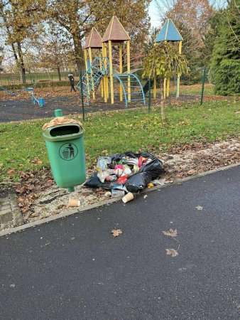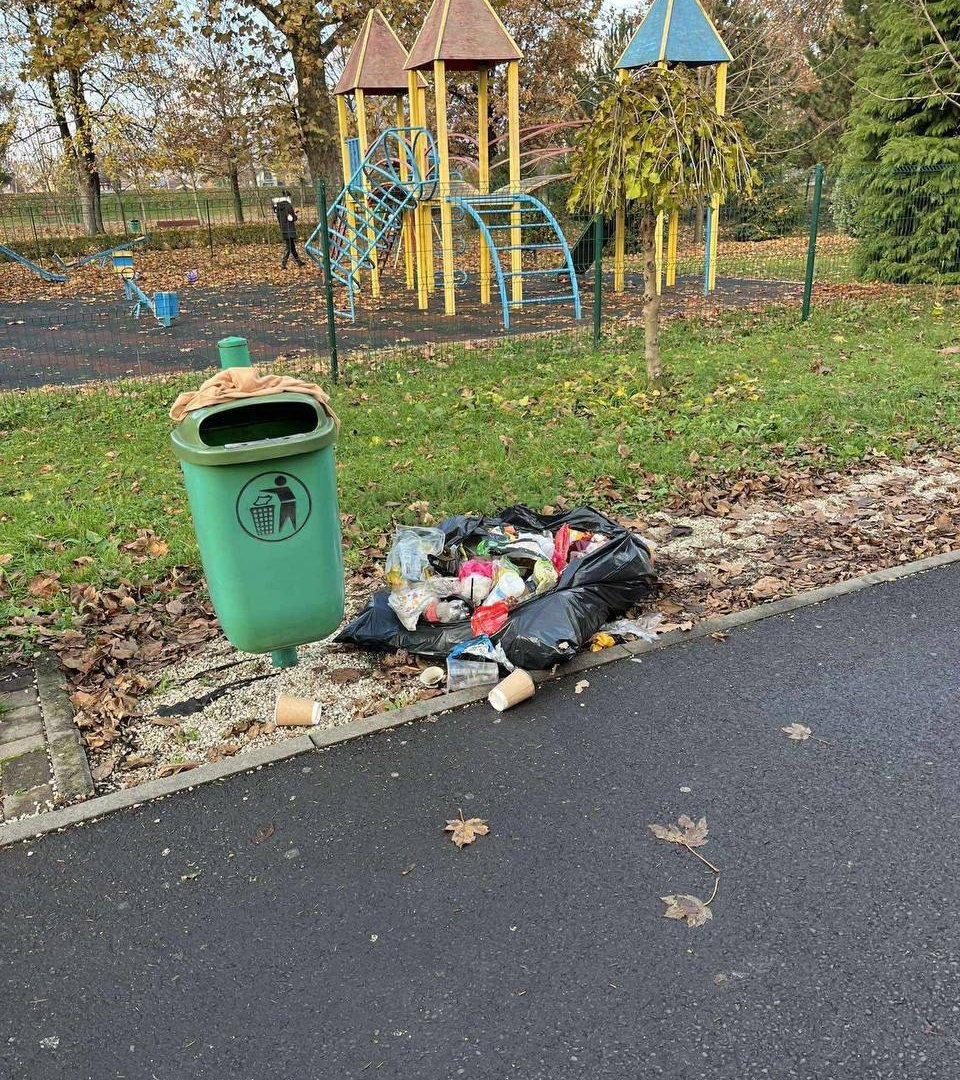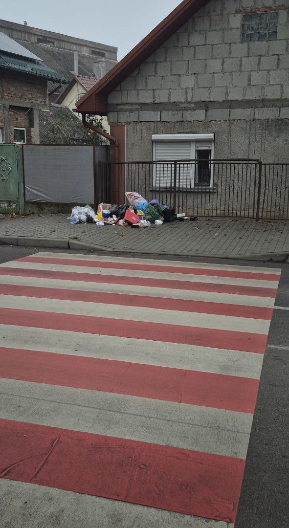 У Мукачівській громаді нагадують, що вуличні урни призначені лише для дрібних відходів. Великий побутовий пакет у таку урну швидко переповнює її, а сміття розкидається тротуарами та газонами, створюючи враження стихійного звалища.