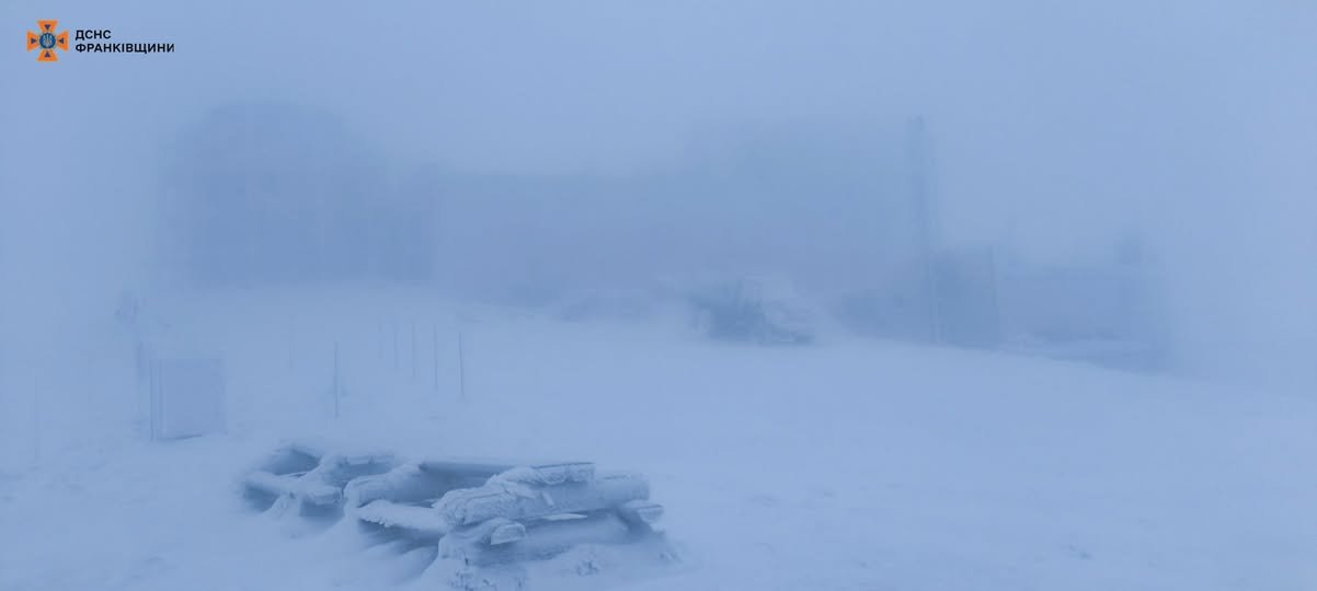 Станом на 08:00, 1 грудня 2025 року, на горі Піп Іван Чорногірський зафіксовано складну зимову погоду: