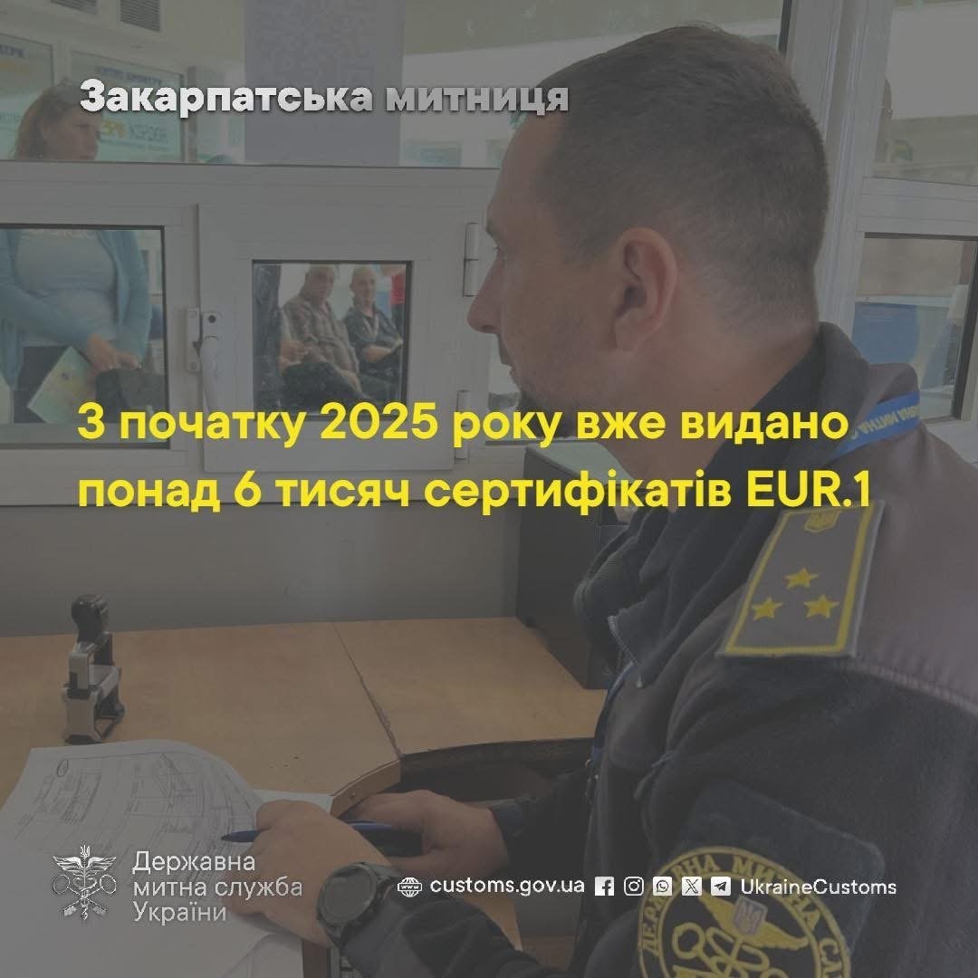 З початку 2025 року Закарпатська митниця вже видала понад 6 тисяч сертифікатів EUR.1. За 11 місяців цього року суб’єкти зовнішньоекономічної діяльності отримали 6145 сертифікатів на товари, експортовані до країн ЄС, ЄАВТ, Великої Британії та Північної Македонії. Для порівняння, торік за аналогічний період було оформлено 7751 документ.