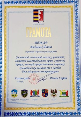 Напередодні Дня місцевого самоврядування низку представників місцевої влади Берегова відзначили обласними нагородами. Про це повідомив міський голова Золтан Бабяк.