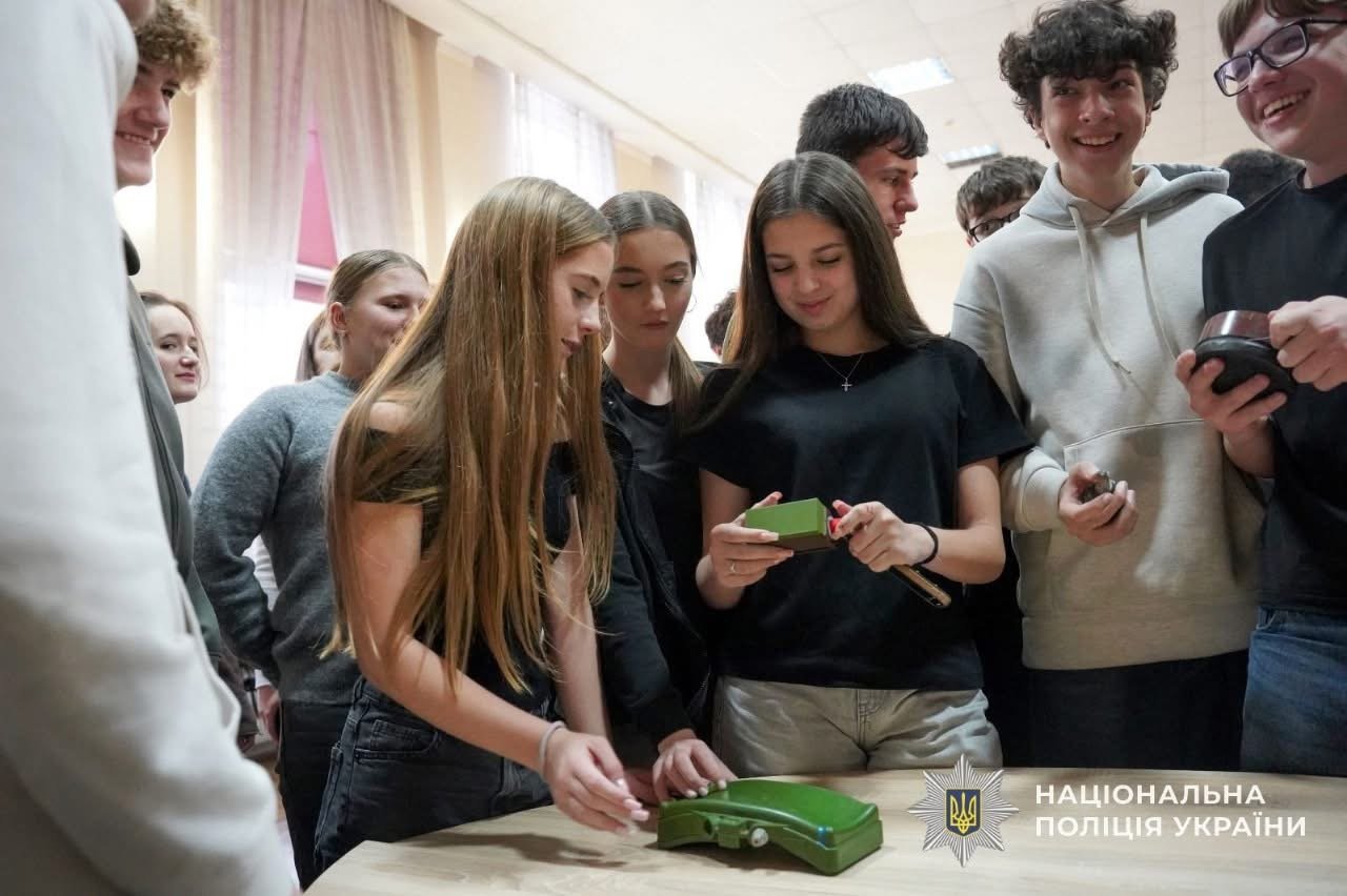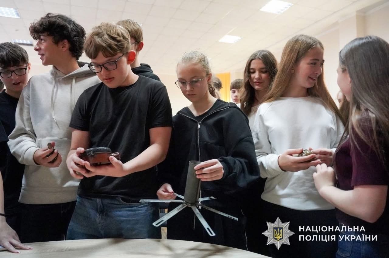 Помічник начальника ГУНП з питань ветеранської політики Владислав Горнодь, колишній співробітник вибухотехнічної служби, розповів про потенційну небезпеку та показав макети вибухонебезпечних предметів. Поліцейський наголосив на алгоритмі дій у разі їх виявлення: не чіпати предмети і негайно повідомляти дорослих або правоохоронців.