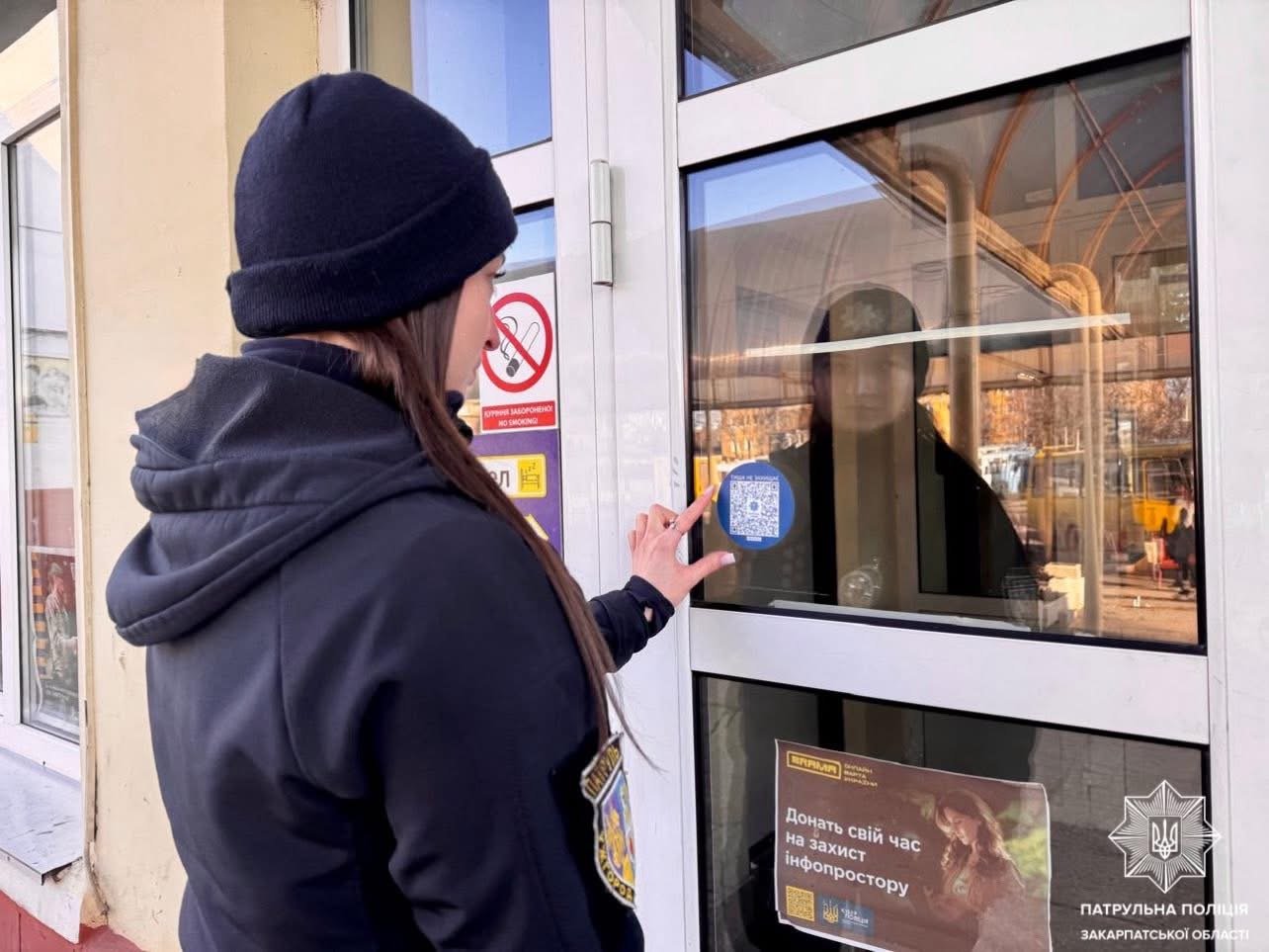 Учора інспекторки відділу зв’язків із громадськістю розмістили спеціальні інформаційні наліпки у місцях з найбільшим потоком людей — на зупинках громадського транспорту, у магазинах, кафе та інших публічних локаціях.