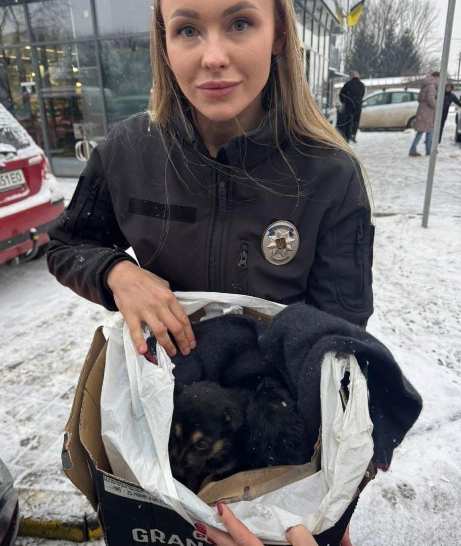 У Мукачеві старша інспекторка сектору протидії домашньому насильству відділу превенції Мукачівського районного управління поліції Юлія Романенко врятувала трьох покинутих цуценят та допомогла знайти їм тимчасовий прихисток.