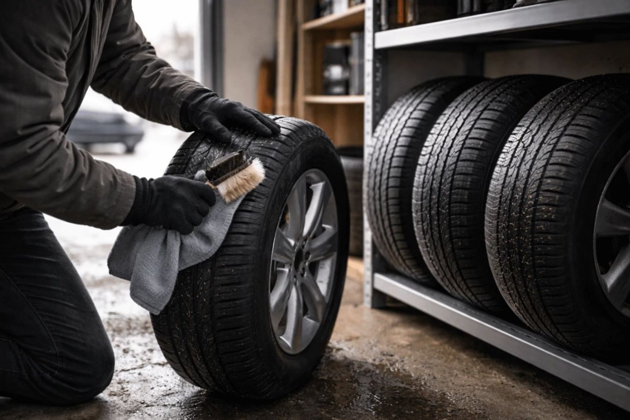 Зняті шини підготуйте до зберігання: очистіть, висушіть і промаркуйте позиції. Шини без дисків зазвичай зберігають вертикально та періодично провертають, а комплект на дисках зручно складати горизонтально або підвішувати. Місце має бути сухим і прохолодним, без прямого сонця та подалі від джерел тепла й агресивної хімії, щоб гума не старіла швидше.