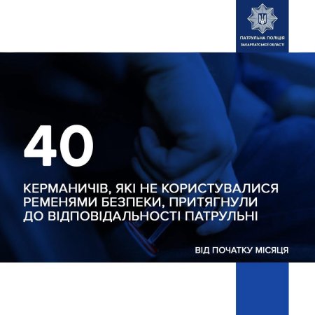 Від початку місяця закарпатські патрульні винесли 40 постанов водіям і пасажирам за їзду без пристебнутого ременя безпеки. Правоохоронці наголошують: нехтування цим простим правилом може коштувати не лише штрафу, а й життя.