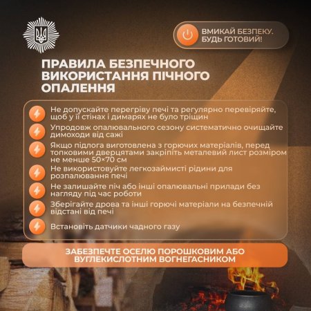 Пічне опалення: Регулярне чищення димоходів — це не порада, а обов’язок. Перегрів печі часто стає причиною нічних пожеж.