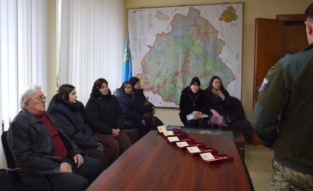 Відповідно до указів Президента України, шість родин Рахівщини отримали нагороди, які тепер зберігатимуться поруч із фотографіями в чорних стрічках.