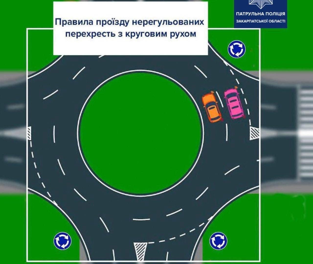 Як правильно проїжджати кругове перехрестя: пояснення патрульної поліції Закарпаття
