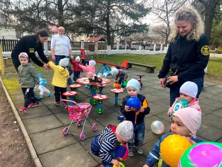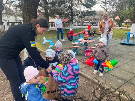 Цього разу гості приїхали не з порожніми руками. Подвір’я центру миттєво наповнилося дитячим сміхом — десятки іграшок одразу опинилися в маленьких руках.