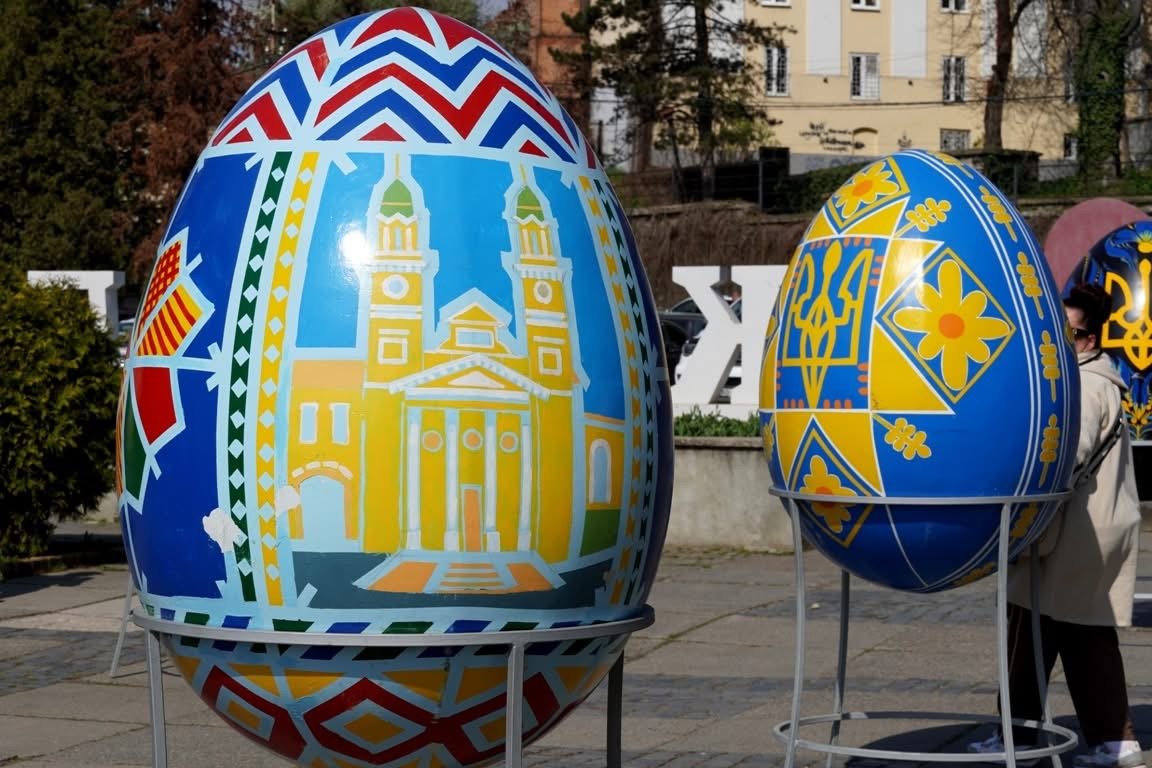 Кожна писанка – це окрема історія: на них зображені культурні та архітектурні пам’ятки Ужгорода, традиційні орнаменти та патріотичні символи, що підкреслюють українську ідентичність і єдність у складний час війни.