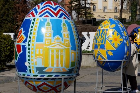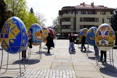 У самому центрі Ужгорода, на площі Поштовій, відкрилася яскрава виставка Великодніх писанок, яка вже сьогодні привабила перших відвідувачів. На експозиції представлено 16 унікальних писанок, серед яких 4 артоб’єкти створені викладачами Ужгородської школи мистецтв. За повідомленням Управління у справах культури, молоді та спорту Ужгородської міської ради, вже цієї суботи виставка поповниться ще чотирма новими роботами.