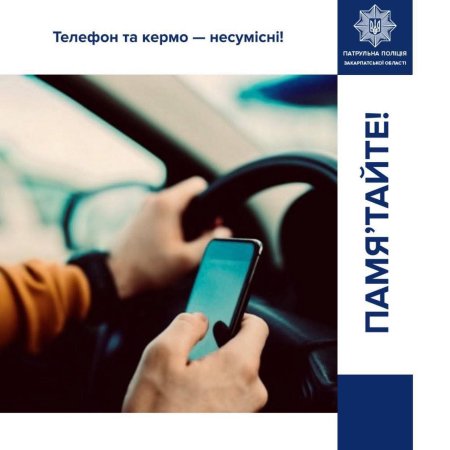 Використання телефону за кермом — це небезпека для водія та інших учасників дорожнього руху, оскільки неуважність на дорозі може призвести до автопригод.