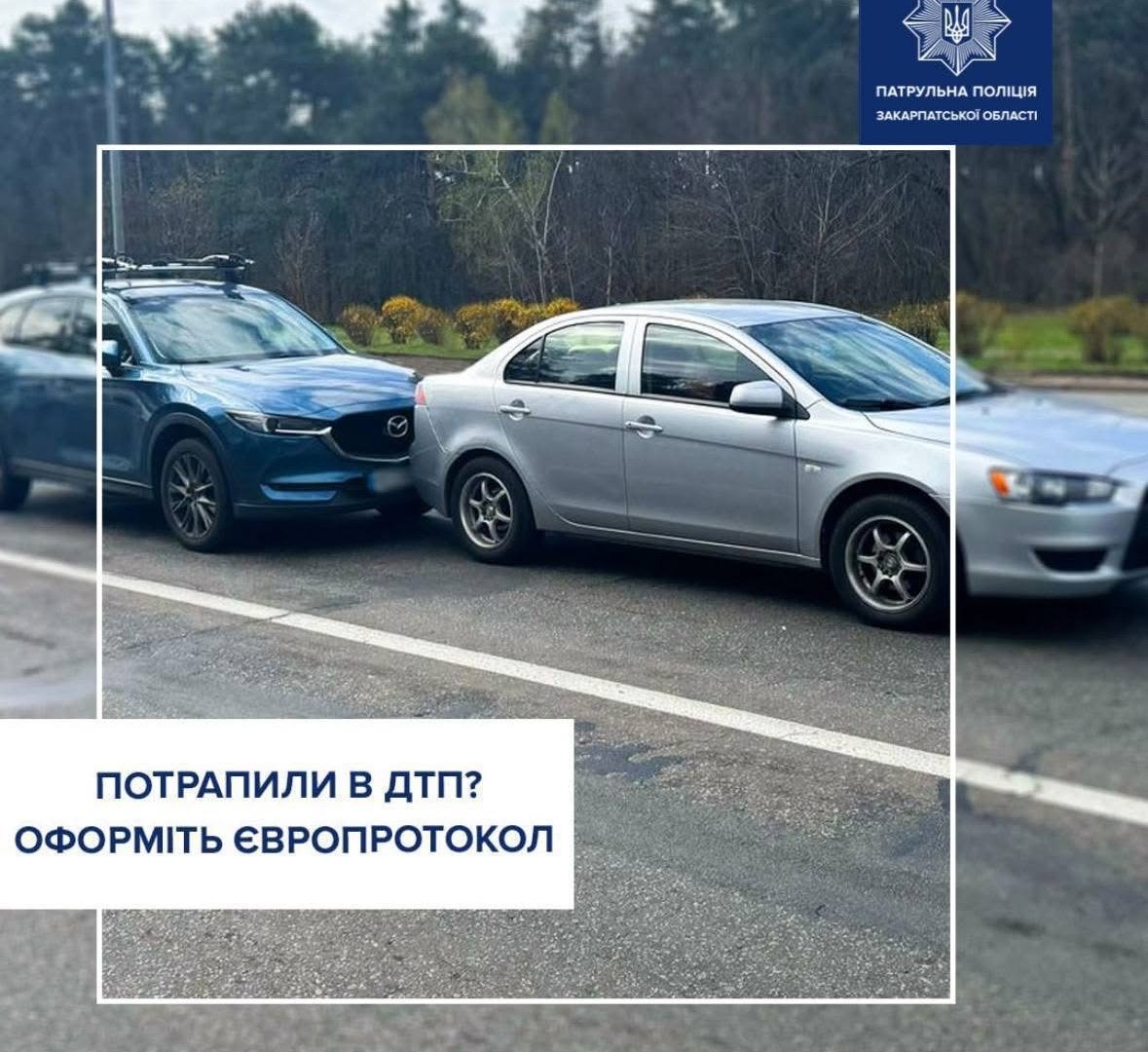 Закарпатські патрульні поліцейські нагадали водіям про можливість оформлення дорожньо-транспортних пригод без виклику правоохоронців — за допомогою європротоколу.