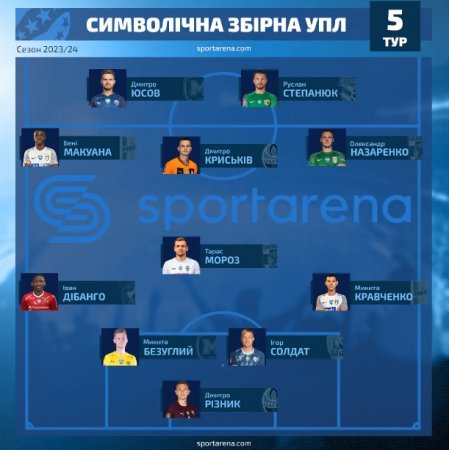 SportArenа назвала символічну збірну п’ятого туру української Прем’єр-ліги з футболу сезону 2023/24.