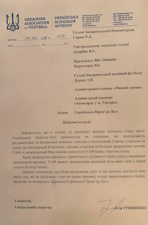 Вдячні за сприяння також депутатам Закарпатської облради і Ужгородської міської ради, які підтримували звернення і звертались до УАФ з проханням дозволити тут проведення матчів УПЛ.