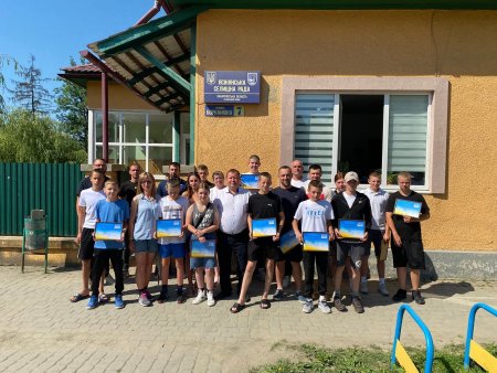 Разом із головою Ясінянської селищної ради Андрієм Делятинчуком, директором ДЮСШ Степаном Маркульчаком та тренером Дмитром Климпотюком нову форму урочисто вручили спортсменам.