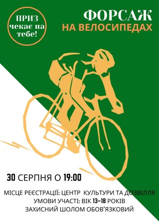 Готуйте свої велосипеди, адже попереду — справжній Форсаж на велосипедах! Це не просто перегони, а захоплива подія, яка об'єднає всіх любителів активного відпочинку. Не сидіть удома — станьте частиною цієї драйвової події та покажіть, на що здатні!
