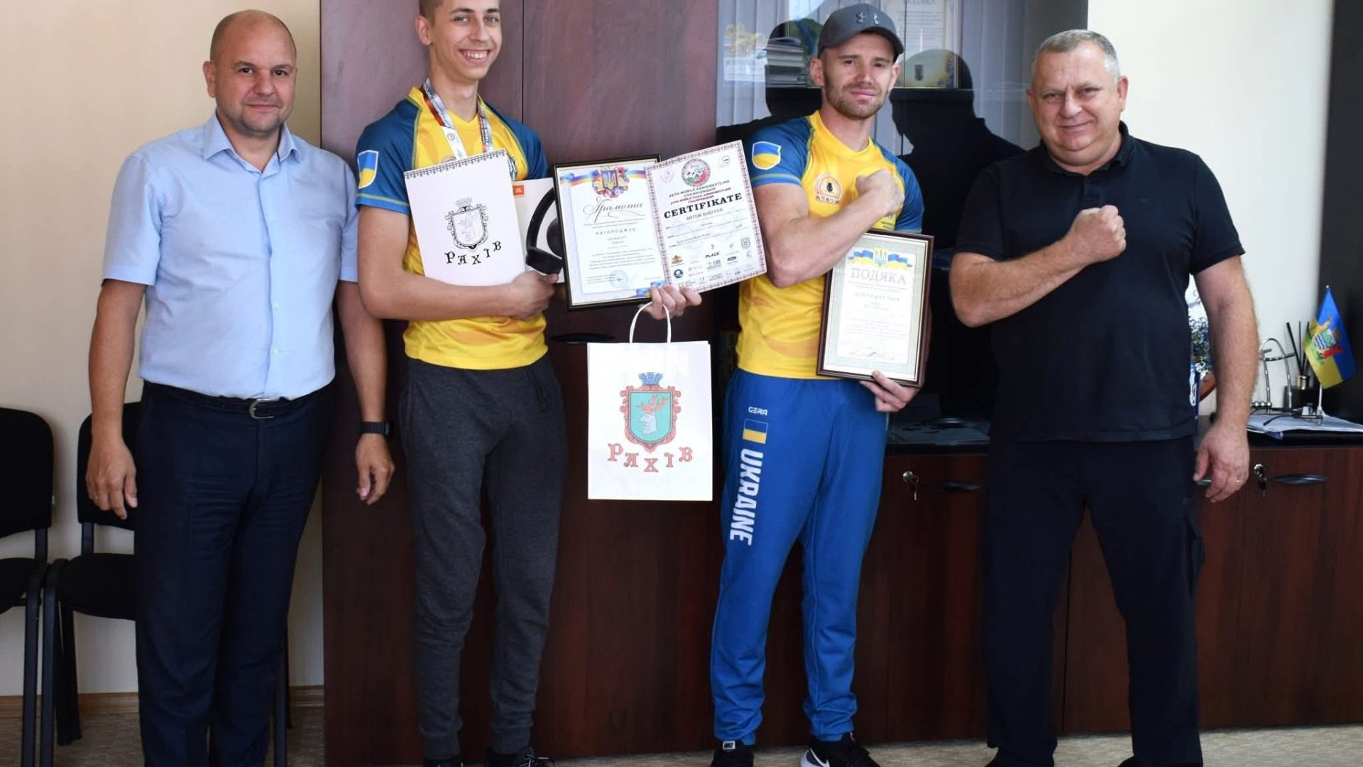 На урочистому заході в.п. міського голови, секретар ради та виконкому Євген Молнар спільно з головою Рахівської РДА Владиславом Кичем вручили юному спортсмену почесну нагороду.