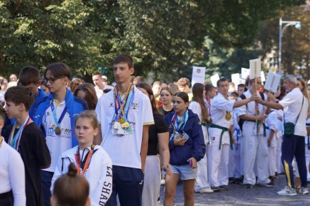 Урочистою ходою крокували представники художньої гімнастики, фехтування, кіокушин БуДо карате, поул спорту, флаг-футболу, плавання, шидокан карате, велоспорту, регбі, легкої атлетики, тенісу, баскетболу, боксу, водного поло, кіокушинкай карате, футболу, змішаних єдиноборств, кікбоксингу, спортивного орієнтування, більярдного спорту, айкідо, комбат самозахисту, важкої атлетики, дзюдо, шахів, волейболу, танцювального спорту (СК “Грація”) тощо.