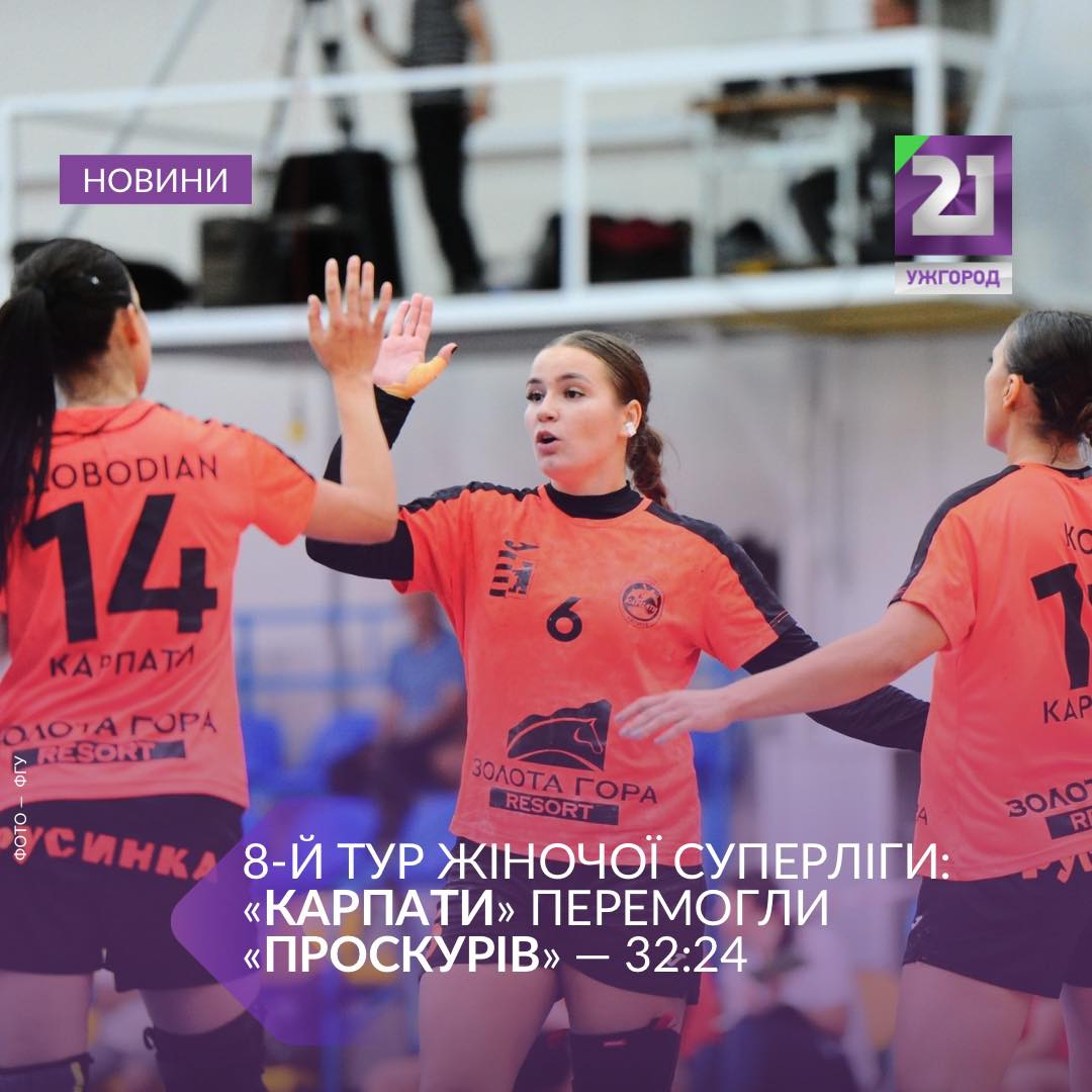 «Карпати Ужгород» у 8-му турі жіночої Суперліги України з гандболу здобули першу перемогу у 2026 році — 32:24 над «Проскуровом» з Хмельницького. Це важлива віха для ужгородського клубу на старті другої частини сезону.