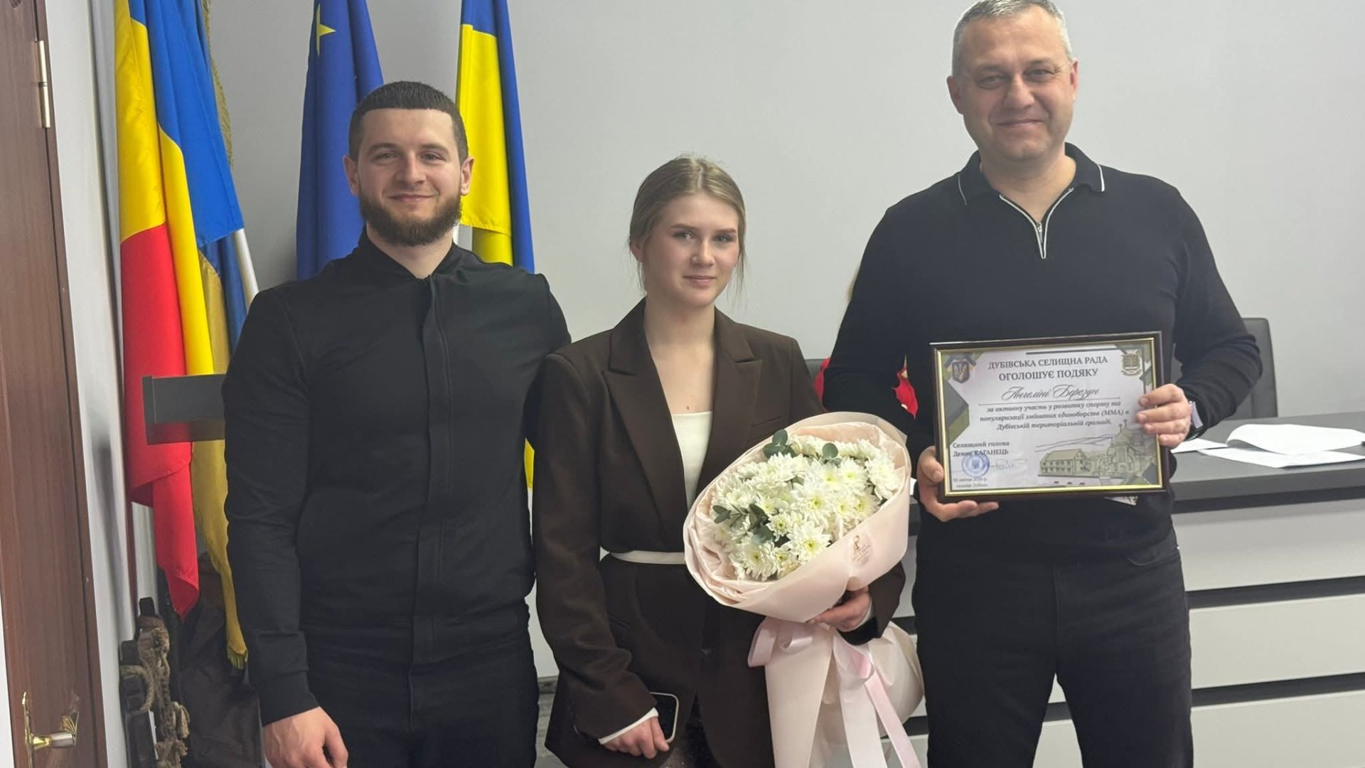 Під час чергової сесії Дубівської селищної ради відбувся урочистий момент — селищний голова Денис Каганець вручив подяку Ангеліні Березун. Дівчину відзначили за активний розвиток спорту та популяризацію змішаних єдиноборств (ММА) на рідній Тячівщині.