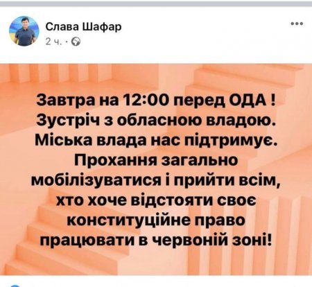 Завтра, 31 жовтня, ужгородські підприємці знову збираються на акцію протесту. Кличуть всіх, хто готовий відстояти своє конституційне право працювати у червоній зоні.