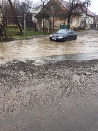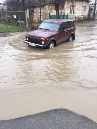 У Хусті автомобілі "потонули" у велетенській калюжі (фото)