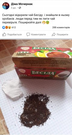 етиках з чаєм Бесіда виявили лечинки черв'яків.