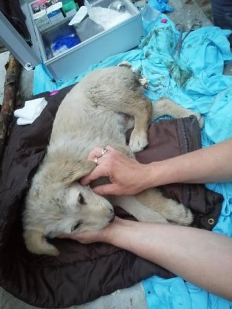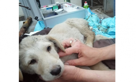 У повідомленні йдеться про те, що цуцика з відрубаним хвостом цигани кинули під трансформаторну будку помирати, але люди знайшли цуцика і відвезли до ветеринара.