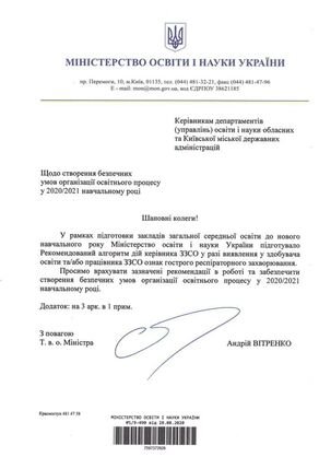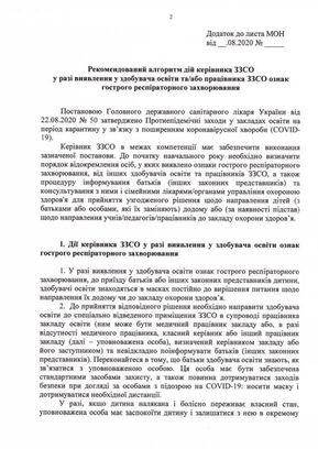 Врамках підготовки закладів загальної середньої освіти до нового навчального року Міністерство освіти і науки підготувало Рекомендований алгоритм дій керівника ЗЗСО у разі виявлення у здобувача освіти та/або працівника ЗЗСО ознак гострого респіраторного захворювання.