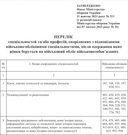 Перелік професій, які підлягають військовому обліку також скоротили.
