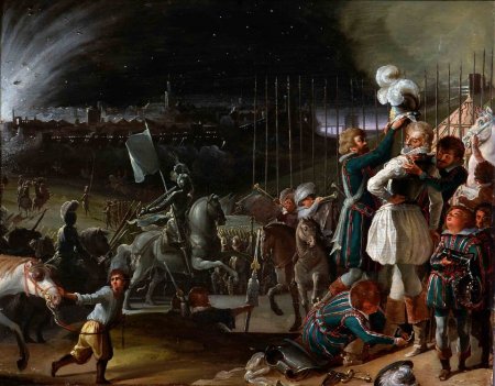 Хоча цьому катерну більше відповідають події, які сталися лише за 26 років після смерті Нострадамуса. У 1590 році війська короля Генріха IV Наваррського оточили Париж. На той час монарх вже кілька років був відлучений від церкви Папою Римським, а місто утримувала Католицька ліга, яку підтримував понтифік. Облога тривала чотири місяці. У цей час солдати розслелилися у навколишніх селищах і містечках та нападали на обози, що йшли до Парижу. Кілька з них захопили та розграбували на мостах.