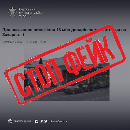 Державна митна служба України офіційно повідомляє, що розповсюджена в деяких ЗМІ неперевірена інформація щодо виявлення на КПП «Захонь» угорською стороною значної суми валюти, яку буцімто переміщувала дружина заступника Міністра МВС України 29 вересня цього року, не знайшла свого підтвердження.