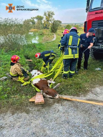 🙏🐄 Рятувальники надали допомогу по витягуванні корови з ями
